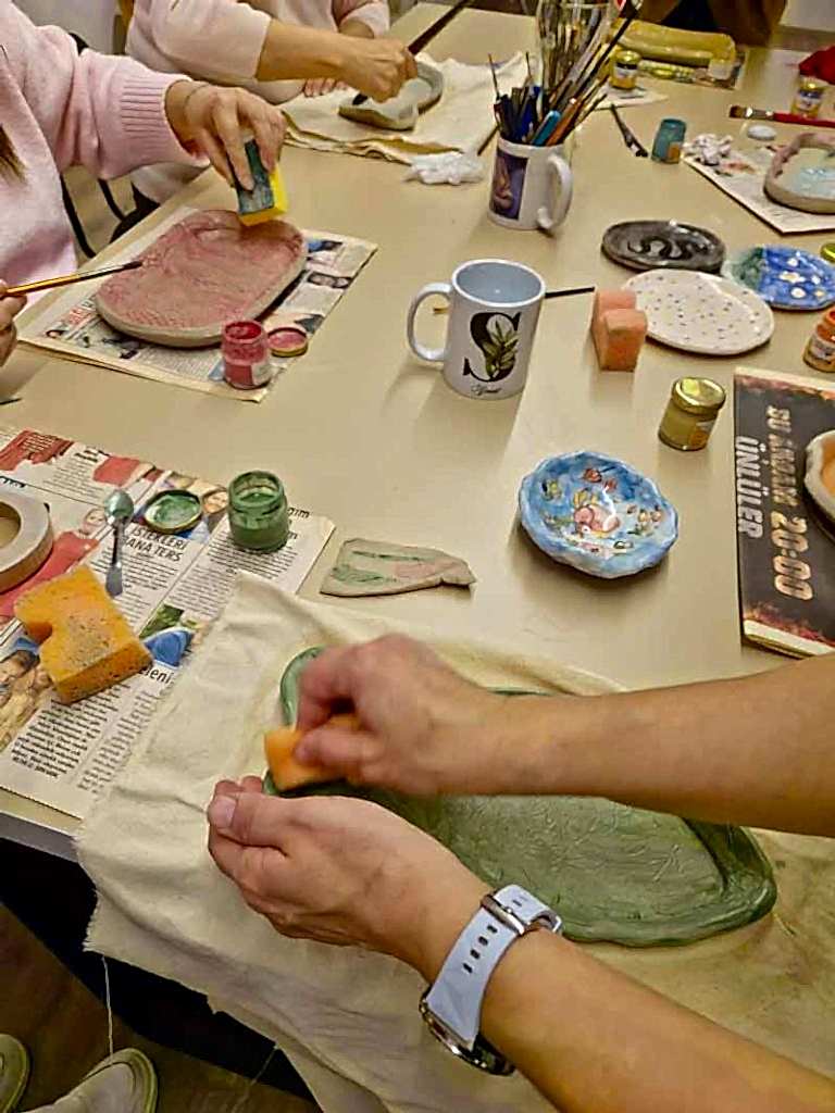 Workshop & Atölye Çalışmaları: Geniş masalarımız, profesyonel aydınlatmamız ve sanat dolu atmosferimizle eğitimleriniz için ideal alan.